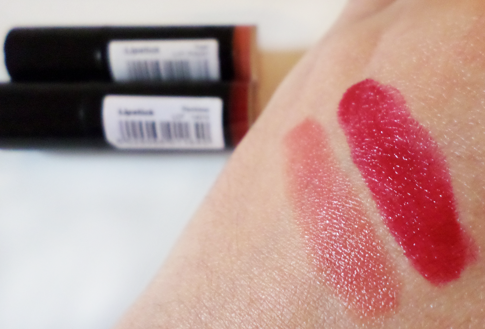 Tinha também curiosidade em experimentar os Soft matte lip cream da NYX, que existem em 34 cores - o que tornou super difícil escolher estes dois - são todos tão lindos! Reparei que estes batons têm nomes de cidades, todas elas de diferentes países de todo o mundo! A formula deste batom é muito cremosa, depois de seco fica totalmente matte, mal transferem - só se estiver a beber ou comer algo - e não secam os labios! Lip swatches - link